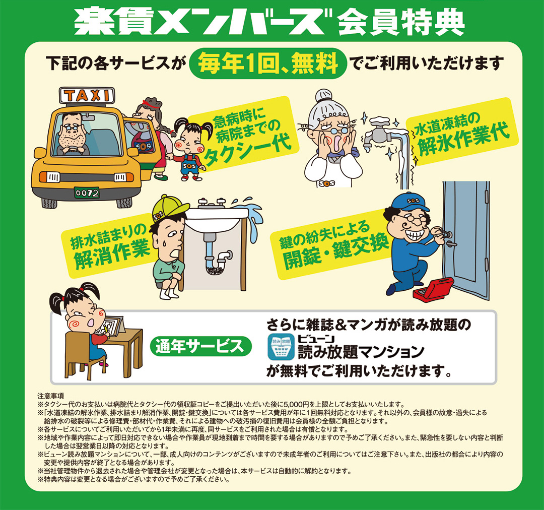 ⑥同一建物内移動で引き続き楽賃メンバーズを利用される場合、当月分フリーレントは適用外となります。